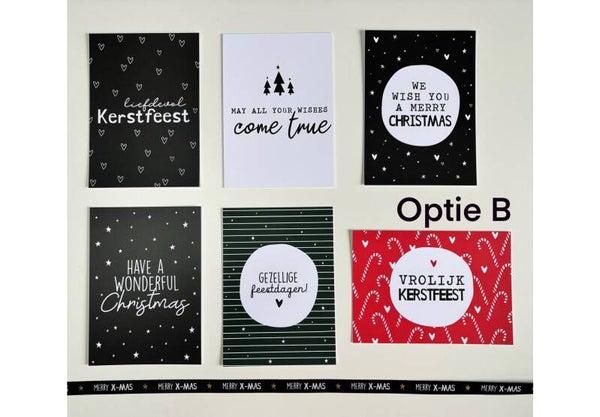 Maak je kerstgroeten extra speciaal met onze mooie kerst ansichtkaarten, perfect verpakt per 6 stuks.