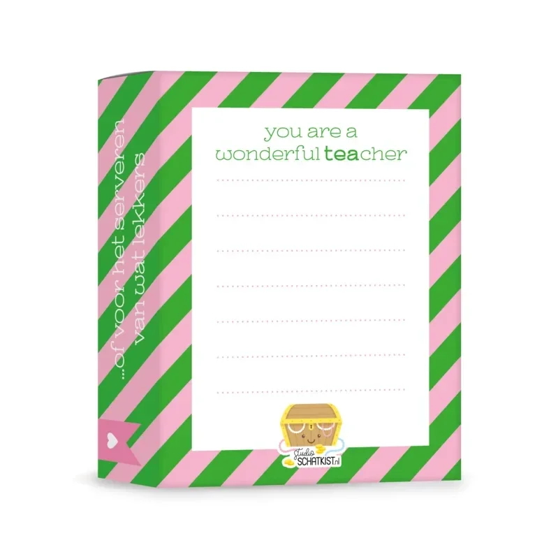 Speelse verpakking – De cadeauverpakking bevat de woordgrap “You’re a wonderful tea-cher”, perfect als juffencadeau!
