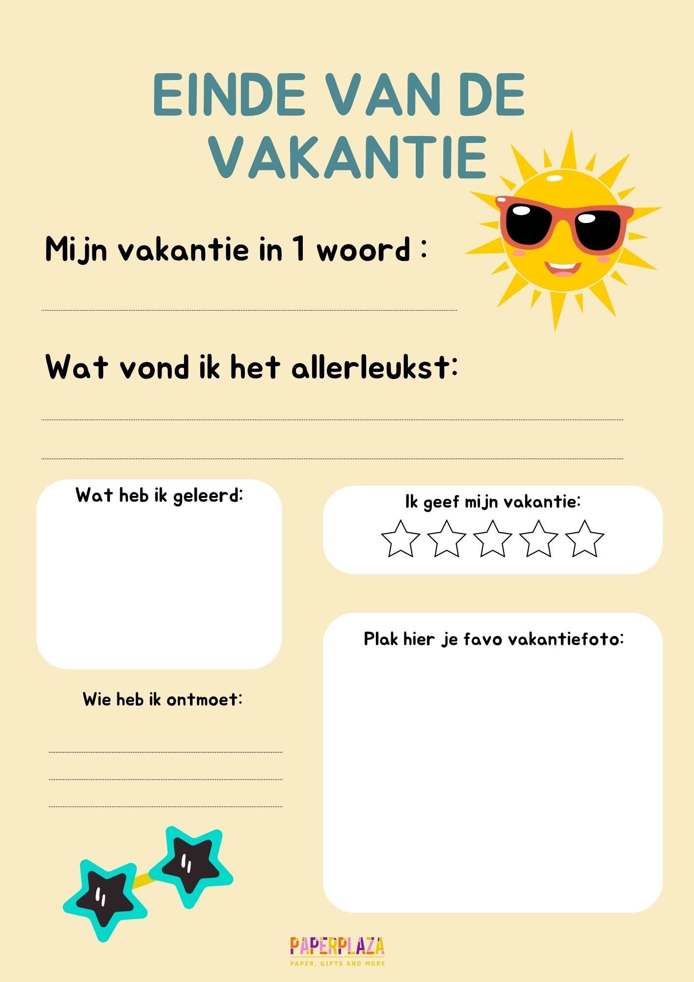 - Terugblikpagina om de hele vakantie samen af te sluiten